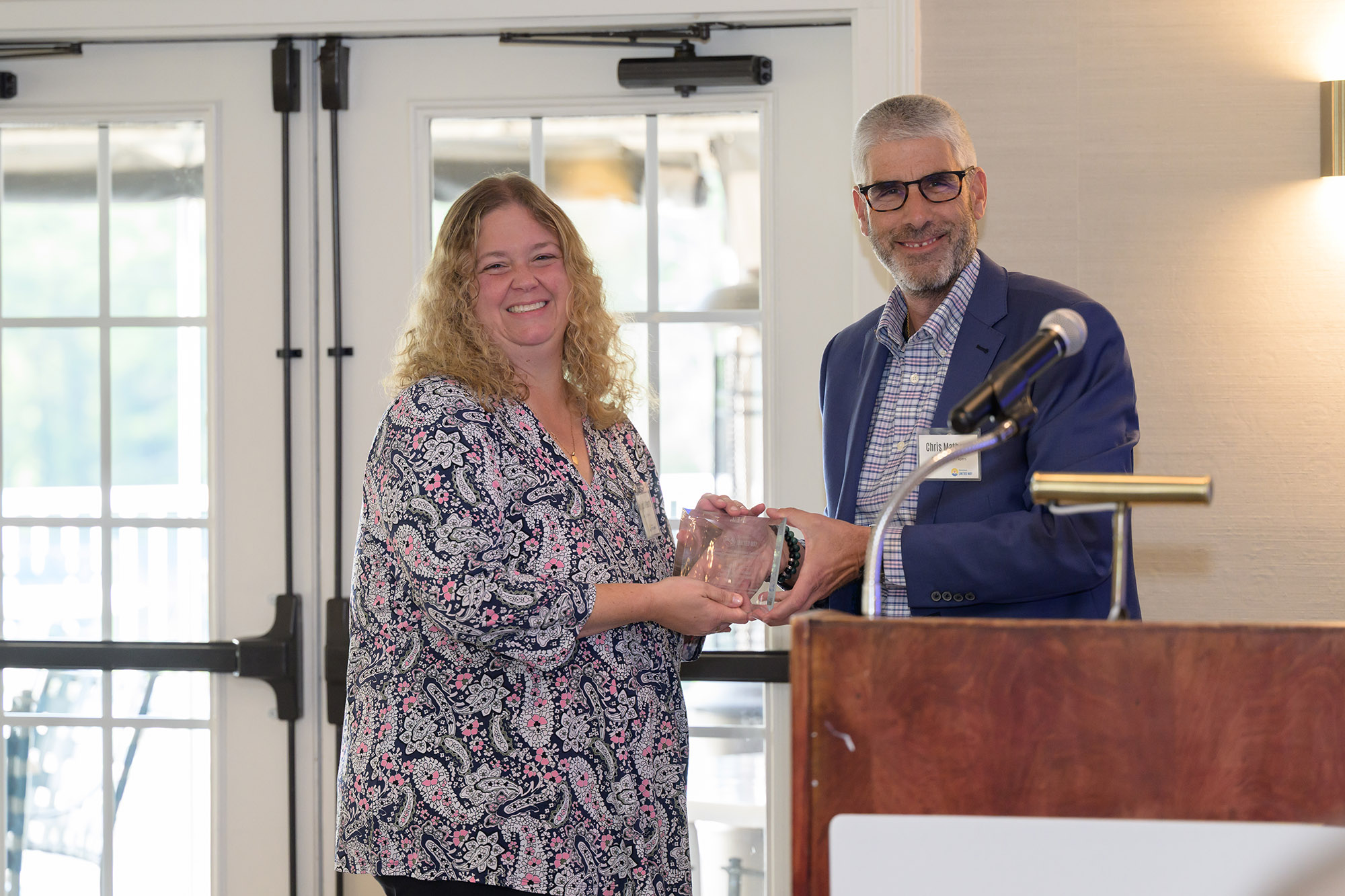 Chris Mathews, Executive VP and owner of Onyx Specialty Papers, helped present BUW's Employee Campaign Coordinator of the Year Award to Molly Hines Aliberti, who has helped organized Onxy's employee giving campaign for seven years.